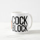 Ett mugg med Mighty Cockblock-design och ursprunglig karaktär av Stitcheart Artworks.