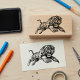 Roaring tiger wooden art stamp. Featuring a vintage style art illustration of a tiger mid jump with a powerful face expression. This artistic rubber stamp is great for use in your creative art projects, journaling or any other crafts and hobbies.