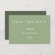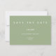En bröllops Save the Date som görs i salvia och vit typografi med precis tillräckligt med information för att vinna dagen. Denna artikel är en del av en bröllopssamling som inkluderar ditt val av inbjudan, svarsbrev, Save the Date och mer. Lägg din information på detta kort, lägg till det i din varukorg och ha en underbar bröllopsdag.