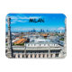 Målning av Milanskyline med moderna skyscraper i Porto Nuovos finansdistrikt och stenstatyer i katedralen Duomo.