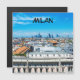 Målning av Milanoskyline med moderna skyscraper i finansdistriktet Porto Nuovo och stenstatyer i katedralen Duomo