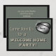 Inbjudan för party för välkomnandehemsoldat som firar militär pride och en lycklig hemkomst. Tillfoga din soldat namn till hundbrickor beklär på och fyller in den skräddarsy texten på baksidaen för ditt egna personlighandlag. Visat i armégrönt och svart med dogtags bekläda och tanka på på baksida.