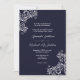 En vit militär inbjudan till marinen Bröllop Elegant designad med mjuka vita accenter på mörkens marinbakgrund. Den vita texten innehåller: Brides och Grooms föräldrar Namn, Brides och Grooms Namn, Bröllop datum, tid, plats och mottagning att följa. Motsatsen är en matchande mörk-marin bakgrund med Bride och Grooms första Initialer. Om du vill anpassa dig infogar du bara dina uppgifter i vår enkla mall och ersätter exempeltexten. Inbjudan finns tillgänglig både under Skriv ut och Hämta. För er Nautial Stil Bröllop, militärens Stil Bröllop, sommarens Bröllop eller när som helst. Se till att se hela insamlingen av marin och vit Elegant Stil Bröllop inklusive OSA kort. Obs! Som ett alternativ till en separat OSA kort har denna samling en andra inbjudan till stil som innehåller uppgifter om OSAN på motsatt sida.