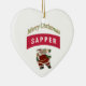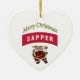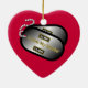 God jul Sapper Ornament. Detta hjärtformade prydnadsföremål dekoreras på ena sidan med militärsaxen, Jultomten och ord "God jul". Baksidan är dekorerad med hund-märkre och ord "I Kärlek My Soldier".