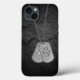 Militära hundbrickor med hund pawprint on black slate sten bakgrund. Bakgrunden kan ändras.