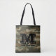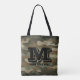 Grönt arméns kamouflera militärt över hela tryckt Tote Bag. Trädlandstext mönster med personlig monogramtext. Medelstor och stor storlek. Anpassningsbar för vänner, familj, soldat etc. Dubbla med svarta handtag.