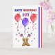 Fira din militärsons födelsedag med den här roligten, färgkortet som har ett rött gräns, blått rand, rött och blått brev, stjärnor, amerikanskt flaggor och stridsstövlar.