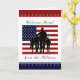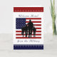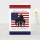 Ett vackert kort för att välkomna hem en vän eller familjemedlem från militären! Utformningen är typisk för den amerikanska flagga och en silhuett med soldater framför stars och stripes. Huvuddelen av färg är rött, vitt, blått och svart. Besök vår affär om du vill ha fler patriotiska vykort, hälsningskort, mode och gåvor i olika stilar, formgivning och färg för manar, kvinnor och barn.