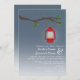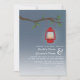 En inbjudan till utomhusbröllop på kvällen med en illustration av ett rött oljeflör som hänger från ett träd-gren med grönt löv. Anpassa texten med din information.