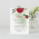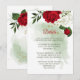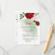 romantiskt röda och vita blommor och grönt löv botaniskt detaljförslutningskort. Uppgifterna om glitter simuleras