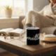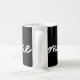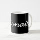 Drick som om du redan är där. Denna eleganta vita keramikkopp har en djärv svart bakgrund med skarp vit text som helt enkelt säger: ”MILJONÄR.”