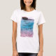 Denna T-tröja för den klimatförändringmedvetenhetMaldiverna souvenir presenterar en härlig undervattens- plats nära kusten av en liten Maldiverna ö. Den har en skola av korallfisksimning under en ro av strandbungalower i en bakgrund av det genomskinliga turkoshavet och vitsanden.