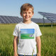 Inspirera nästa generation miljökämpar med denna livfulla solenergi-t-shirt för pojkar. Designen har en färgrik illustration av moderna solpaneler mot en bakgrund av böljande gröna kullar och en klar himmel med solstrålar. Perfekt för skolan, science camp eller vardagligt bruk, denna bekväma t-shirt firar ren teknik och en hållbar framtid. Det är en idealisk present till unga upptäckare och blivande ingenjörer som är nyfikna på solens kraft och att skydda vår planet.