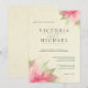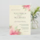 Abstrakta rosa blommor på en simulerad ecru-pergamentbakgrund med luftiga blad och lekfulla virvlar inramar denna vackra bröllopsinbjudan. Perfekt för inomhus- och utomhusbröllop i trädgården under alla årstider - vår, sommar, höst och vinter. Elegant, semi-formell vintage-typografi kommer säkert att behaga den traditionella bruden, men en touch av sofistikerad styling gör den trendig nog för moderna brudar. Enkel men stilren elegans till låga priser och överkomliga priser för sparsamma brudar på en budget. Visas på miljövänligt återvunnet papper - kan enkelt ändras till billigare Basic-kortpapper eller uppgraderas till premiumkvalitet filt, linne och metalliska pappersalternativ. Anpassa den för att ändra typsnittsfärger och stilar. Kompletta bröllopspaket och brölloppskit finns tillgängliga på begäran. Vänligen kontakta oss om du vill att denna design ska ändras för att matcha ditt brölloppsfärgtema. Denna lättanvända mall kan också anpassas för alla speciella tillfällen som förlovnings- och äktenskapsmeddelanden, årsdagsfirande, födelsedagsfirande för kvinnor, företags- och affärsevenemang, välgörenhetsgalor