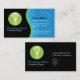 Denna grönt, blått och svartvisitkort presenterar en ljus kula med löv i centrera. Denna design föreställer en Eco vänskapsmatchaffär.