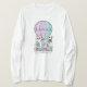 Den extremt söta T-shirt-långärmaden med Milo, den elaka katten och Bo, den klumpiga, älskvärda hund, flyter i en gigantisk pastellluftballong. Den här kawaii tecknad stil-teckningen poppar med stort glatt ögon, mjuk pastellrosa, lavender, mynta och baby blue färg och rena feta konturer. Den lekande handskrivna texten "Upp, Upp och Pawsome!" är omgiven av moln, stjärnor, hjärta och gnistor, skapar den perfekt för kawaii pastel mode, djurälskare och vid behov tryckta samlingar. Idealisk gåva till katt och hundälskare som tar hand om mysiga långärmader.