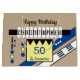 Speciell milstolpe, ålderspresspåse. Provet som visas är för 50 år - anpassa sig till kostym i en annan ålder och lägg till namn. Brun, vit, svart, blå och gult. Triangel, prickar och rand. Jag önskar dig en mycket speciell födelsedag och ett underbart år framåt.