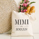 En modern minimalistisk väska för att fira en chic mormor, den här rena, minimala toten innehåller "Mimi" eller ditt val av smeknamn i smeknamn i svart smycke. Anpassa med året som hon blev en mormor under elegantens romerska siffror för en chic.
