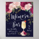 Mimosa Bar Bröllopsskylt Marinblå Burgundy blommor Poster