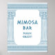 Elegant Toga-fest 'Mimosa bar, njut' bordskylt med eleganta tempelpelare och grekiskt meander-mönster i blått. Perfekt för dina antika Grekland- eller antika Romarriket-tema bröllop, förlovningar, examensfester, årsdagar, save the dates, möhippor och födelsedagsfester.