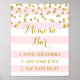 Mimosa bar skylt affisch för baby shower, bröllopsfest eller bröllop i ljus rosa och vita ränder mönster med guld konfetti, observera att guld är endast en fotografisk effekt. Perfekt för en baby shower, bröllop eller bröllopsfest.