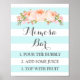 Mimosa pub-skylten poster för babydusch, möhippa eller bröllop i ljusblått och vitt rand mönster med vintage persikofärgade vattenfärgblommor av rosa med handskrivna stil-bokstäver. Perfekt för en babydusch, bröllop eller möhippa.