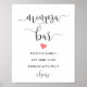 Ett Mimosa pub-tecken med ett informellt modernt teckensnitt och rum för att redigera ditt eget meddelande. Du kan också ändra hjärtan färg. Det här tecknet har matchande märkre i vår bröllopskategori.