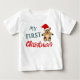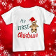 Min 1:a jul Teddybjörn Tomtehatt Baby T-Shirt. Grön och röd typografi. Söt teckning av en teddybjörn med röd tomtehatt.