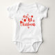 Min 1:a jul röda moderna handskrivna bokstäver med stjärnor och Santa hatt Baby-bodysuit har texten "Min 1:a jul" i modern röd handskriven kalligrafi typografi med stjärnor, snöflingor och en Santa hatt. Perfekt för bebisar till jul, baby shower eller julpresent. Designad av ©Evco Holidays www.zazzle.com/store/evcoholidays
