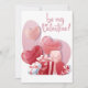 En livlig, animerad scen vecklar ut sig med flottörliknande hjärtformade ballonger som svajar mjukt i luften. Presenter inslagna i blankt rött och vitt papper är staplade på ett lekfullt sätt, medan en stor hjärtformad låda sitter framträdande i förgrunden. Kameran gör en långsam inzoomning och fångar de blanka texturerna och glada färgerna. Mjuk, varm belysning förstärker den romantiska atmosfären och skapar en glad och inbjudande stämning. Scenen är stiliserad i en modern, lekfull illustration, perfekt för en Alla hjärtans dag-firande.