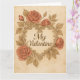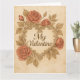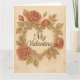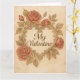 Fira kärlek med tidlös skönhet på detta valentinskort i vintage-stil. Med en utsmyckad hjärtformad ram, elegant kursiv text som lyder “Min älskade”, och frodiga röda rosor på en sepia-tonad bakgrund, frammanar denna design charmen hos gammaldags romantik. Perfekt för kära, makar eller någon som uppskattar klassisk elegans, är detta kort ett hjärtligt sätt att säga “Jag älskar dig” med grace och nostalgi.