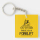 Min andra resa är ett gaffeldrag i svart versaler med blandat teckensnitt med en ikon med en person på gaffelfot lastbil. Sätt på fast livfull gult.