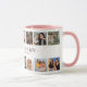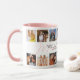Snygg bröllopspresentmugg till brudtjänsten med 14 foton som du kan ersätta med dina egna, texten "vill du vara min brudtjänst?" i en ljusrosa elegant typsnitt, och ett personligt förslag.