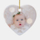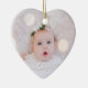 Ditt baby-foto på en hjärtformade keramisk ornament! Ladda upp din egen bild för att skapa Julgran-prydnadsföremål för dig själv eller ge som en gåva till familj, vänner, föräldrar och mor- och farföräldrar! Ord kärlek i ett checkskript visas över fotot på framsidan och lägg till baby namn och födelsedatum på baksidan.