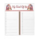 Ett Anteckningsblock för utcheckning av Helgdag för köp av gåvor eller för att göra en lista som är klar i ett kute Jultomten som kontrollerar hans listtema