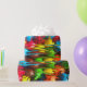 En skarp färgad, figursättning för abstrakt av presenter som beskriver smälter M&M-kanaler.