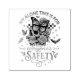 En brant, färglös utformning med en skalle med fjärilar, ro och ett flygande fladdermus. Den färgstarka texten lyder: "Min ensam är för allas säkerhet". Den här utformningen är tillgänglig för en mängd olika produkter.