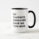 Utformningen "Min favoritanställd gav mig detta Mugg" är en humoristisk kontorsgåva till chefer, perfekt för chef dag och födelsedagar. Det är ett underbart sätt att uttrycka uppskattning för sitt team och visa respekt för deras hårda arbete. Den här unika designen är perfekt för chefer, övervakare eller alla som har lite roligt på jobbet. Det är en perfekt, en födelsedagspresent eller bara ett roligt för att visa uppskattning. En unik och minnesvärd gåva från anställda till deras favorit chef eller chef.