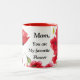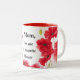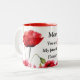 Den här vackra tvåtons kaffemuggen har röda vallmoblommor och orden "Mamma, du är min favoritblomma" i svart färg. Klicka på " Anpassa" för att ändra texten, typsnittsstil och typsnittsfärg om så önskas. Det här är en fantastisk och genomtänkt present som får Mamma att känna sig speciell på Mors dag!