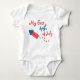 Texten "Min första 4:e juli" är valfri. Ändra texten med hjälp av mallformuläret. Anpassningsfunktionen kan användas för att ändra typsnittet och layouten för den här karosserin!