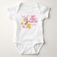 Utför anpassningsbar flicka för en baby 1:a Påsk-personlig med ditt barns namn. En dålig bild av ett spädbarn som är klädt i en kanin i kostym och som håller en kanin bredvid ett skrivet chick och söt rosa.