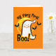 Det här söta lilla spöket med rosiga orangar säger MY VERY FÖRST BOO! En stor gult måne och ett sött, litet leende fladdermus gör den här fina designen perfekt för din lilla Halloween. På baby och barn T-shirts, tote bags, hälsningskort med mera! PinkInkArt-original!