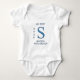 Skapa en familjeåterförening för ditt yngsta generation med den här "min första återförening"-karosseri. Den här 1-biet-utrustningen har ett stort, blått, texturerat brev S på framsidan tillsammans med familjens namn och år. Vår familjeåterförening växer ständigt. Kontakta oss för speciella designbegäranden.