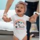 Cute-kroppsdräkt med 1:a födelsedag med söt ko och regnbåge i bakgrunden
