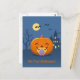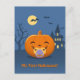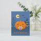Baby Halloween-pumpa med nappar. En död träd, en läskig mansion, några fladdermöss och måne ses i bakgrunden.