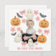 Fira din lilla en babys milstolpe med detta charmiga My First Halloween Baby Flat Card. Med en fantasifull krans av pumpor, spöken, godis, blommor och blad som ramar in din babys foto, är detta kort perfekt för att dela glädjen av ditt barns allra första Halloween. Personalisera det med din babys namn och texten "My First Halloween" för en minnessak som vänner och familj kommer att värna om. Perfekt som högtidskort, babyannonsering eller inbjudan till din Halloween-firande.