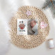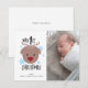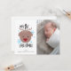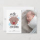 En söt fotomall med bebis till höger, med en söt rödnosad ren till vänster med "Min 1:a jul" typografi med isblå snöflingor. Signaturmallar på framsidan under typografin. Anpassningsbar hälsningstext på baksidan.