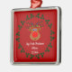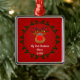 Bild av en julrenare, omgiven av holly, på mörkens röda bakgrund.