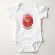 "Julglädjen, Personligen till Din lilla: En söt renare, med en röd snöbakgrund, och din baby namn gör att den här baby-bodykosten blir perfektens kläder för en magisk första jul." Anpassa utformningen till baby namn. Redigera texten med användan "Anpassa".