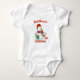"Julglädjen, Personligen för din lilla man: Ett sött snögubbe, presenter galore, och din baby namn gör baby till perfektens dräkt för en magisk första jul." Anpassa utformningen till baby namn. Redigera texten med användan "Anpassa".